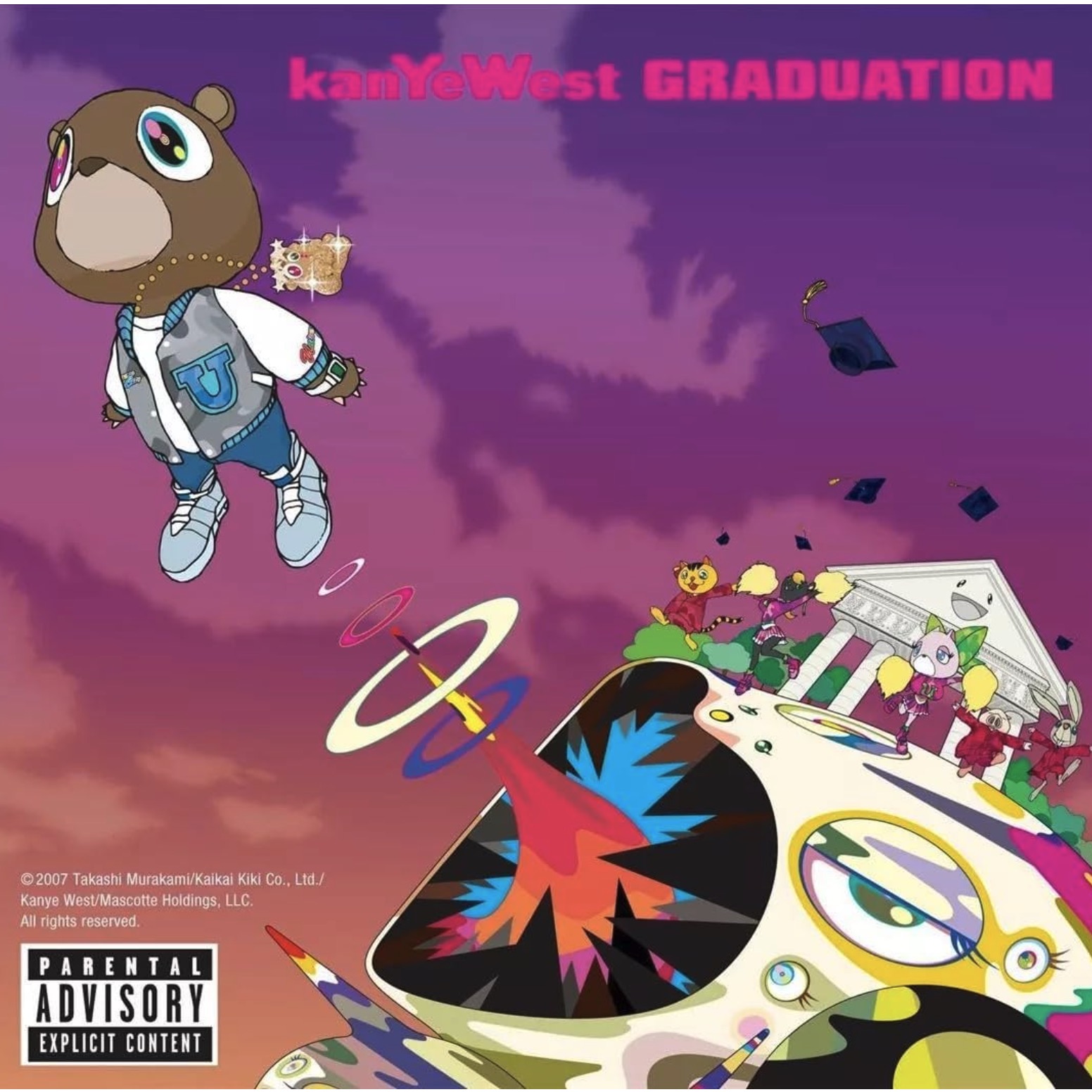 Thematically, "Graduation" explores personal growth, ambition, and the struggles of fame. West's introspective lyrics reveal his experiences and emotions, touching on topics such as success, perseverance, and the impact of celebrity culture. The album's artwork, designed by Takashi Murakami, further accentuated its innovative spirit, featuring vibrant colors and distinct visuals that matched the music's forward-thinking approach. Overall, "Graduation" solidified Kanye West's position as a visionary artist and left a lasting impact on the hip-hop genre and music as a whole.